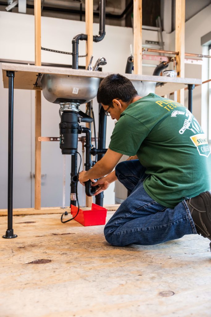 Our Plumbing Technician program gets you started off right in your new career by teaching you the fundamentals of plumbing, mathematics in plumbing, devices, values, fittings, fixtures, water supplies, safety, design, and installation. Whether you’re interested in working in residential, commercial, or industrial positions, we’ve got you covered, with hands-on training in all the nuts and bolts (and pipes and valves) you need to qualify for entry-level positions.